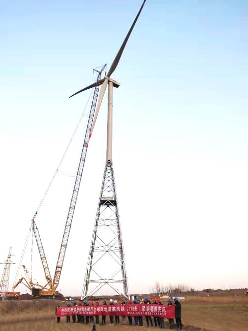 中國(guó)儲(chǔ)能網(wǎng)訊:近日,中國(guó)電建所屬山東電建三公司金膠州里岔分散式風(fēng)電項(xiàng)目6號(hào)風(fēng)機(jī)成功吊裝,該風(fēng)機(jī)預(yù)應(yīng)力桁架式塔架高度91.4米,風(fēng)機(jī)安裝高度達(dá)170米,是國(guó)內(nèi)第一高塔架,也是目前全世界最高的風(fēng)機(jī)。