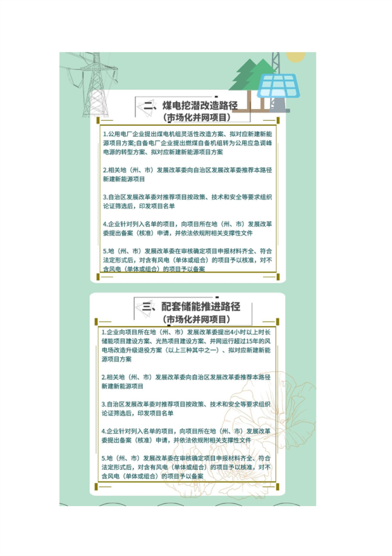 溫馨提示:通過煤電挖潛改造路徑建設(shè)新能源項目的,投資主體應(yīng)為實施煤電機組靈活性改造、自備機組轉(zhuǎn)為公用應(yīng)急調(diào)峰電源的企業(yè),不得轉(zhuǎn)讓新能源建設(shè)規(guī)模。申報配建新能源項目前,企業(yè)需提出煤電機組靈活性改造方案,自治區(qū)發(fā)展改革委結(jié)合國網(wǎng)年度機組檢修安排,開展靈活性改造方案評估,印發(fā)煤電機組靈活性改造計劃?;蚱髽I(yè)提出燃煤自備機組轉(zhuǎn)為公用應(yīng)急調(diào)峰電源的轉(zhuǎn)型方案,明確轉(zhuǎn)為公用電源的時間、電網(wǎng)接入方式等事項,自治區(qū)發(fā)展改革委會商國網(wǎng)新疆電力公司,確認轉(zhuǎn)型方案。