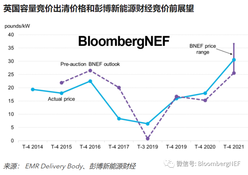 2022年2月22日,2021英國T-4容量競價出清價格達創(chuàng)紀錄的30.59英鎊/kW。具備參與T-4競價資格的競標總量下降至新低,這增加了滿足需求所需的新建電廠數(shù)量。這推高了出清價格——處于彭博新能源財經(jīng)在其競價展望中給出的價格預測區(qū)間的中間水平——欲了解更多內(nèi)容,彭博新能源財經(jīng)正式訂閱客戶請查閱《2021年英國T-4容量競價展望:供給短缺》。