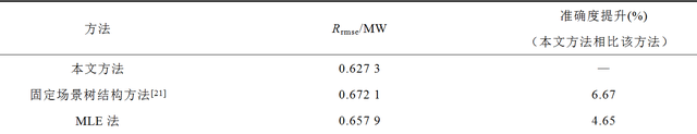 2)針對隨機性問題場景繁多的問題,提出一種可變預(yù)測時域的場景樹生成方法。該方法通過增加大概率場景的預(yù)測時域提高預(yù)測精度。同時,本課題將MLE方法和加權(quán)隨機采樣法相結(jié)合,提出一種新的場景選擇方法,不僅最大概率場景容易被選擇,同時相對低概率的場景也能被選擇,從而提高了場景的預(yù)測精度。算例結(jié)果表明采用本方法所選場景的方均根誤差相對固定場景樹結(jié)構(gòu)的方法提高了6.67%,較極大似然估計法提高了4.65%。