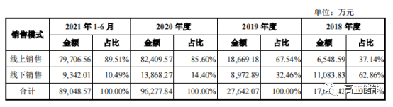 2021年1-6月,公司線上收入占比整體營收接近九成。