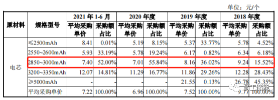 高工鋰電注意到,華寶新能源便攜式儲(chǔ)能產(chǎn)品主要采用三元18650圓柱電芯,單位容量集中在 2400mAh-3350mAh。其中2850-3000mAh電芯采購額占比超過50%。電芯供應(yīng)商主要為比克、躍成能源、橫店東磁等。