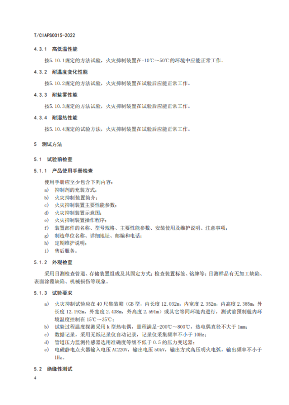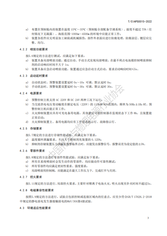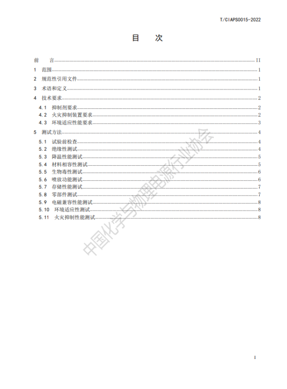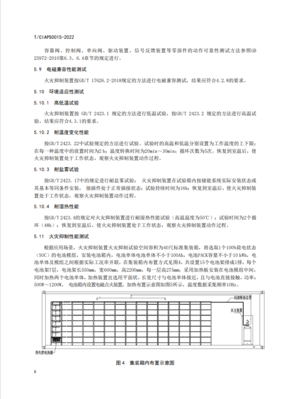 本標(biāo)準(zhǔn)適用于預(yù)制艙式鋰離子電池儲(chǔ)能系統(tǒng)中抑制劑和火災(zāi)抑制裝置的性能要求和測(cè)試方法。