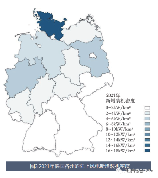 圖4 截至2021年年底德國(guó)各州的陸上風(fēng)電累計(jì)裝機(jī)密度