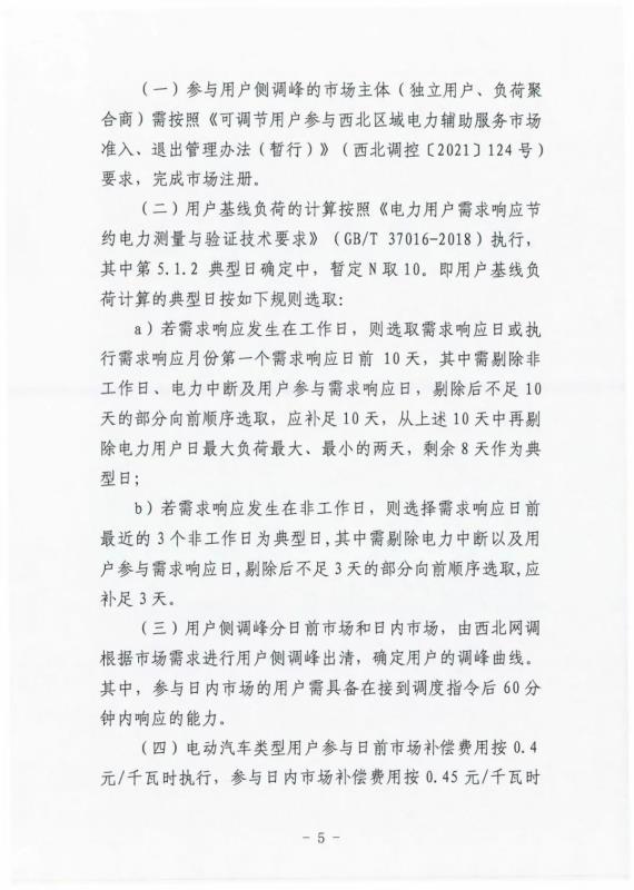 電動汽車類型用戶參與日前市場補償費用按0.4元/千瓦時執(zhí)行,參與日內市場補償費用按0.45元/千瓦時執(zhí)行,其他類型用戶(大工業(yè)用戶、電蓄熱、智能樓宇等)參與日前市場補償費用按0.5元/千瓦時執(zhí)行,參與日內市場補償費用按0.6元/千瓦時執(zhí)行。