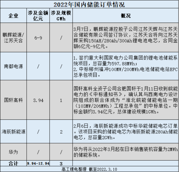 據(jù)高工鋰電不完全統(tǒng)計(jì),短短兩個(gè)多月,國(guó)內(nèi)儲(chǔ)能訂單涉及項(xiàng)目就有6個(gè),涉及金額超9億元,規(guī)模超3GWh。