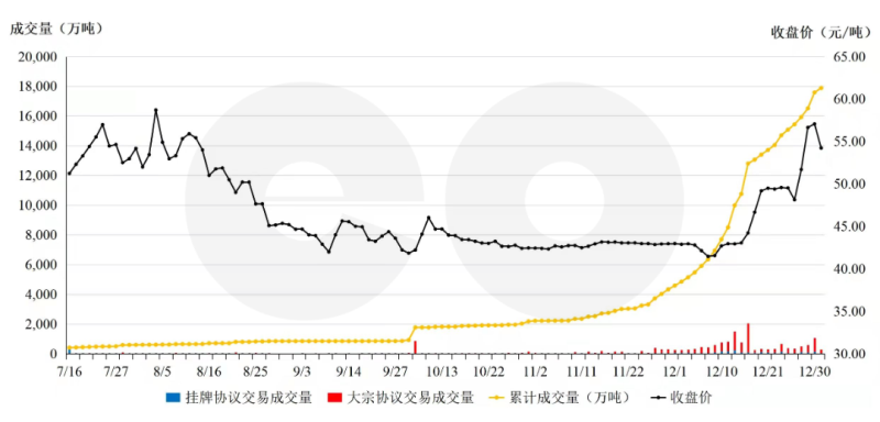 據(jù)悉,由于履約時間緊,也出現(xiàn)了一些缺口較大的電廠在交易系統(tǒng)中難以購買足額配額的情況。此外,進入12月,碳價持續(xù)走高,部分本就虧損的煤電廠更加缺乏履約動力。
