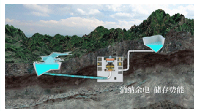 當(dāng)新能源發(fā)電多發(fā)、電網(wǎng)消納不了時,抽水蓄能電站用多發(fā)的電將水從下水庫抽到上水庫,轉(zhuǎn)化為勢能儲存起來。