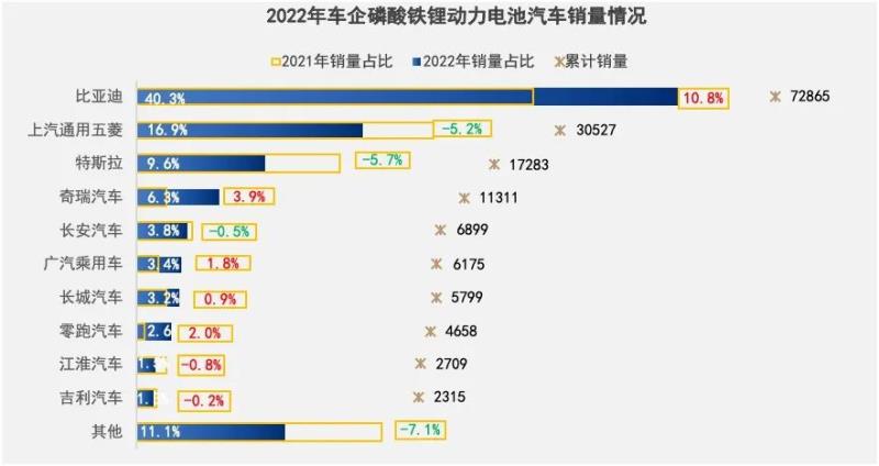 比亞迪旗下大部分車型均搭載自家磷酸鐵鋰刀片電池,1月所售磷酸鐵鋰車型中,超過40%的車型產(chǎn)自比亞迪。上汽通用五菱、特斯拉、奇瑞、長(zhǎng)安、廣汽乘用車、長(zhǎng)城汽車、零跑汽車、吉利汽車、小鵬汽車,江淮汽車,旗下入門級(jí)新能源車型在磷酸鐵鋰動(dòng)力電池的裝載上,均有傾向。