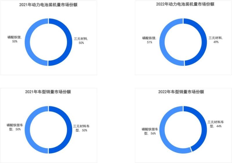 動(dòng)力電池主要分為三元?jiǎng)恿﹄姵睾土姿徼F鋰動(dòng)力電池,近幾年磷酸鐵鋰電池裝機(jī)量占比一路走高,相應(yīng)地三元?jiǎng)恿﹄姵卣急瘸掷m(xù)走低。2022年是A級(jí)車市場(chǎng)走強(qiáng)的機(jī)會(huì),也是磷酸鐵鋰電池繼續(xù)提高占比的推力。