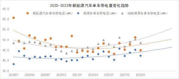 不管從什么層級(jí)看,2021年單車帶電量均呈現(xiàn)上升趨勢(shì),最主要的原因在于動(dòng)力電池性能提升。也是在2021年,純電乘用車平均單車帶電量反超新能源乘用車平均單車帶電量,究其原因還是因?yàn)樾履茉瓷逃密囦N量份額的進(jìn)一步。