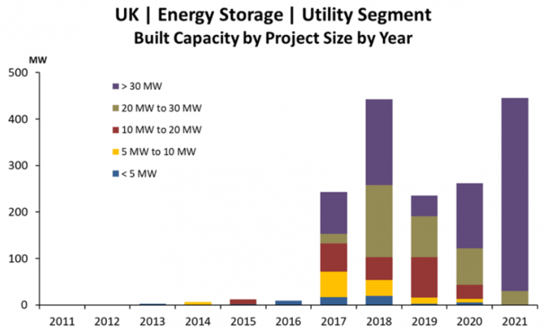 中國儲能網(wǎng)訊:從2016年開始,英國能源市場對電池儲能系統(tǒng)(BESS)的需求不斷增長,使其成為當今全球市場領(lǐng)先的活動中心之一。英國的公用事業(yè)規(guī)模儲能活動在2021年強勁增長,與2020年相比,年度部署量增長了70%。此外,到2021年底,未來項目的管道增加了11吉瓦,達到27吉瓦以上。