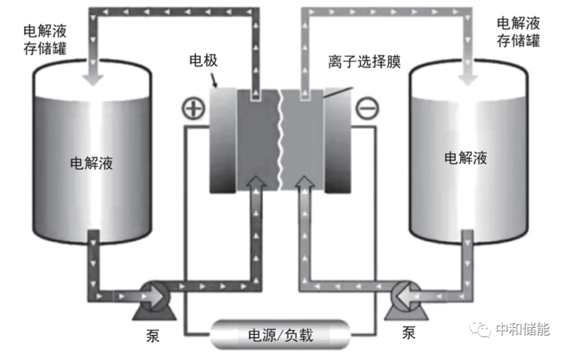 在對(duì)儲(chǔ)能時(shí)間的不斷要求下,新型儲(chǔ)能技術(shù)中的液流電池展現(xiàn)出獨(dú)特的優(yōu)勢(shì)。液流電池作為一種新型二次電池,通過(guò)化學(xué)活性物質(zhì)價(jià)態(tài)的可逆變化實(shí)現(xiàn)電池的充放電,進(jìn)而達(dá)到化學(xué)能與電能相互轉(zhuǎn)化的目的。