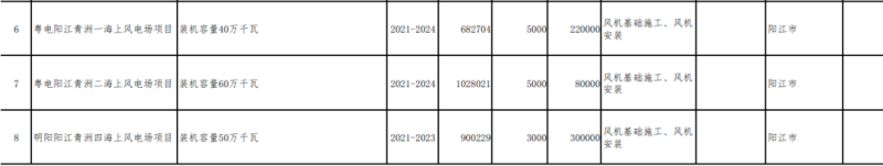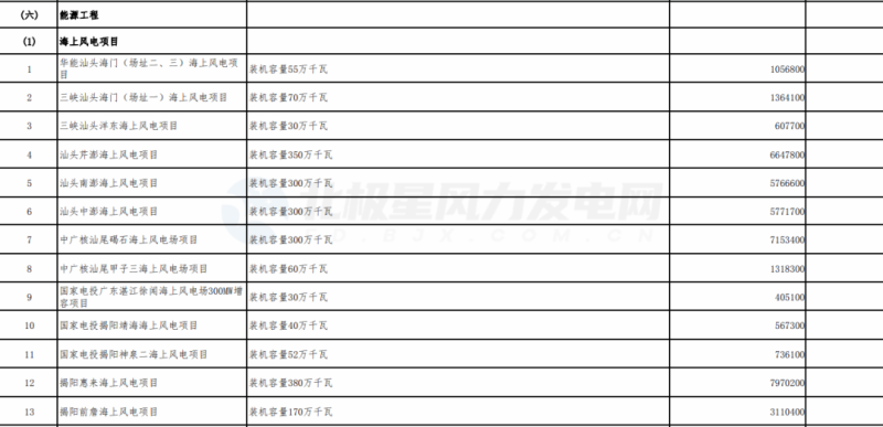 項目包括:海上風電投產項目1個,50萬千瓦;續(xù)建項目11個,共計750萬千瓦;新開工項目2個,共計95萬千瓦。
