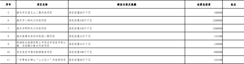 廣東2022年重點建設項目計劃表(風電節(jié)選)
