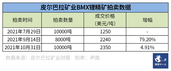 議價(jià)能力的最主要體現(xiàn)就是皮爾巴拉礦業(yè)在2021年7月推出的BMX鋰精礦拍賣(mài)平臺(tái),該平臺(tái)分別在2021年7月29日,9月14日,10月31日進(jìn)行了三輪鋰精礦的拍賣(mài),價(jià)格及數(shù)量參見(jiàn)表5。