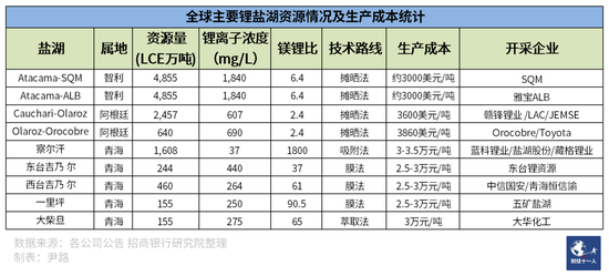 表4:全球主要鋰鹽湖資源情況及生產(chǎn)成本