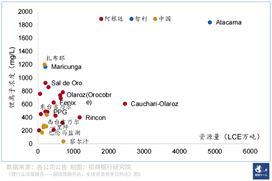 圖5:全球主要鋰鹽湖品味及儲(chǔ)量
