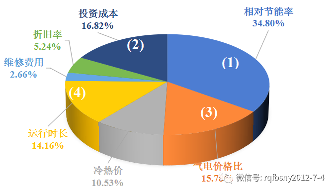 圖1 影響天然氣分布式能源項目經(jīng)濟性的主要因素權(quán)重占比