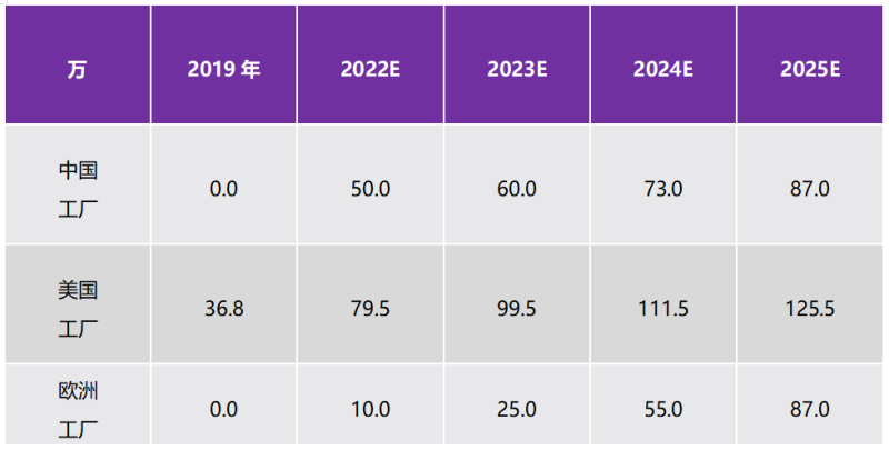2. 電動(dòng)化宏偉目標(biāo)的達(dá)成,需要多種動(dòng)力電池技術(shù)加持。特斯拉中長(zhǎng)期產(chǎn)銷(xiāo)量可期:預(yù)計(jì)到2025年,特斯拉產(chǎn)銷(xiāo)量有望達(dá)到300萬(wàn)輛,其中中國(guó)87萬(wàn)輛,歐洲87萬(wàn)輛,美國(guó)126萬(wàn)輛。