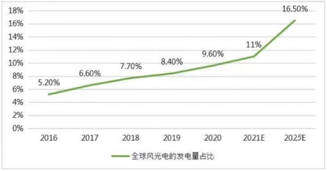 全球風(fēng)光電的發(fā)電量占比 數(shù)據(jù)來源:國(guó)融證券研究與戰(zhàn)略發(fā)展部