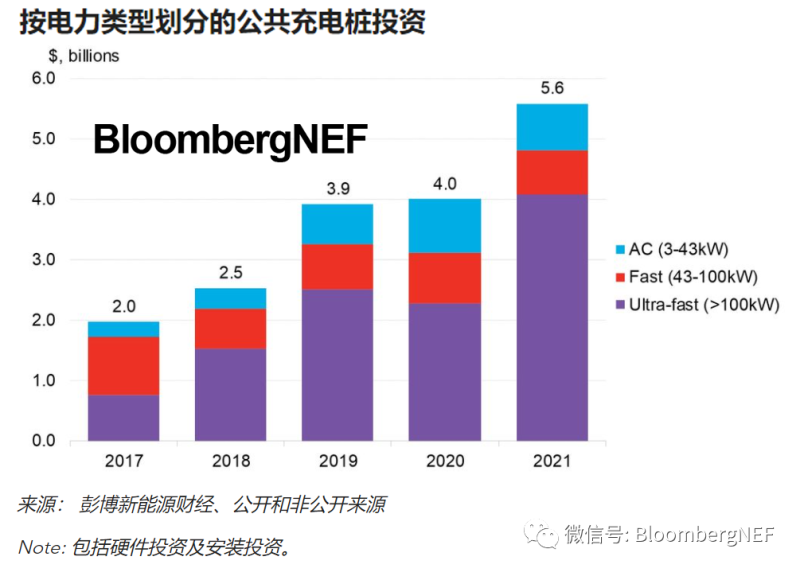 2021年公共充電網(wǎng)絡(luò)投資達(dá)56億美元,其中超快速充電樁的投資額占比73%。
