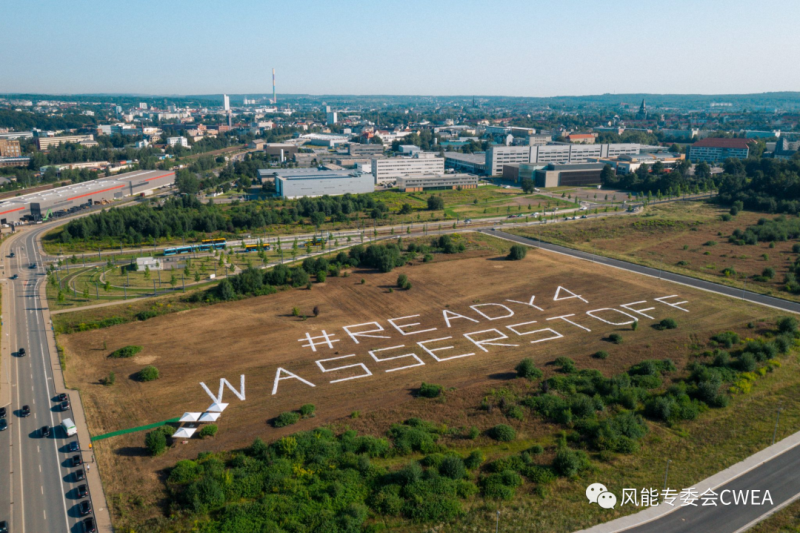 開姆尼茨國家氫能中心工地打出的巨大橫幅:開姆尼茨為氫能做好準備。#Ready4Hydrogen 照片:© HZwo eV / Thomas H?ppner