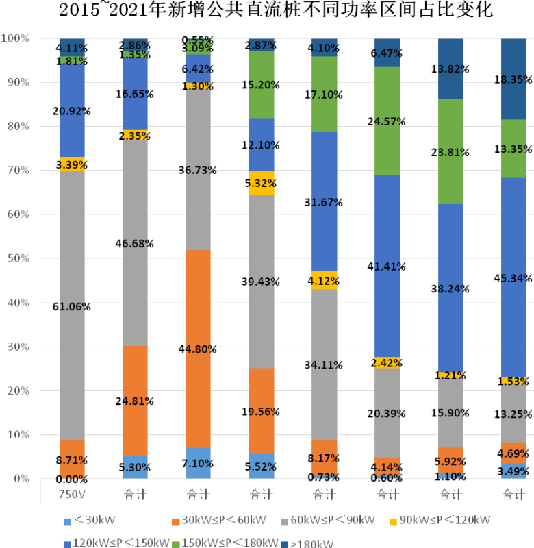 新增公共直流樁不同功率區(qū)間占比變化