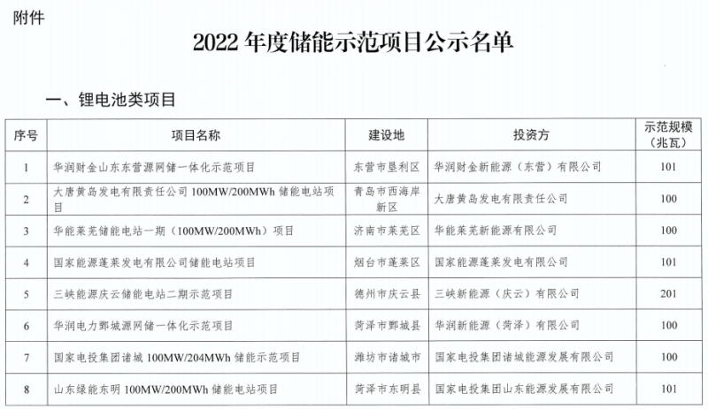 中國儲能網(wǎng)訊:4月7日,山東省能源局發(fā)布《關(guān)于2022年度儲能示范項目的公示》。共29個項目,總規(guī)模達3.103GW。