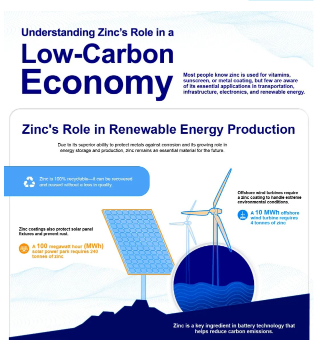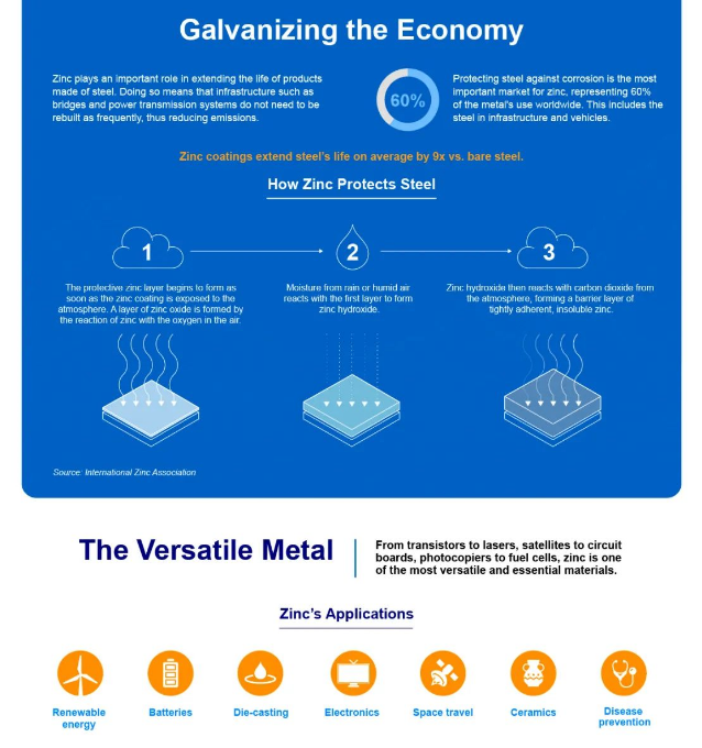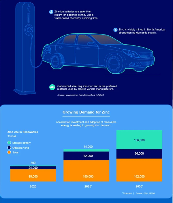 鋅是一個(gè)每年400億美元的市場(chǎng)。與其他金屬不同,鋅天然資源豐富,可以滿足未來幾代人的需求。隨著世界向低碳經(jīng)濟(jì)轉(zhuǎn)型,鋅將繼續(xù)在支持清潔能源技術(shù)方面發(fā)揮關(guān)鍵作用。