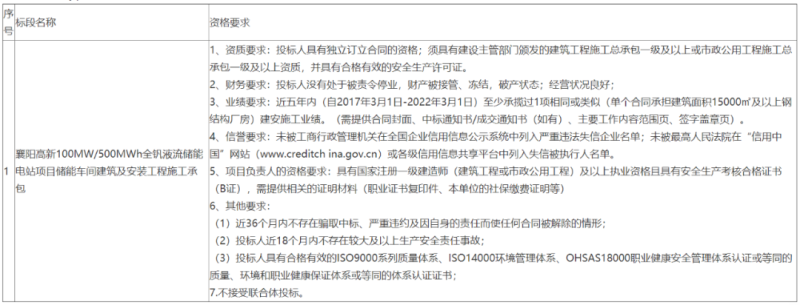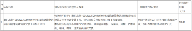 國家電力投資集團有限公司湖北分公司襄陽高新100MW/500MWh全釩液流儲能電站項目儲能車間建筑及安裝工程施工承包招標公告