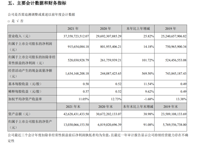 欣旺達(dá)2021年主要財(cái)務(wù)數(shù)據(jù) 圖片來源:年報(bào)截圖