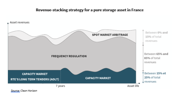 對于原有能源基礎(chǔ)設(shè)施資產(chǎn)類別而言,這些新市場仍然非常不穩(wěn)定且難以解讀。與通過購電協(xié)議(通常以預(yù)先商定的固定價(jià)格)獲得報(bào)酬的可再生電力項(xiàng)目不同,法國的儲能系統(tǒng)面臨重大市場風(fēng)險(xiǎn):靈活性服務(wù)的定價(jià)系統(tǒng)源于供需平衡的基本原理。無論是通過現(xiàn)貨市場運(yùn)營,還是通過參與定期招標(biāo),這些資產(chǎn)的不同營業(yè)額來源本質(zhì)上是不穩(wěn)定的,從長遠(yuǎn)來看難以預(yù)測。
