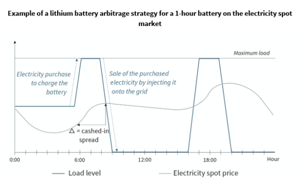 在法國,這些靈活性資源的開發(fā)得到了開放新市場的支持,以獲得更多的收入。而對電價(jià)預(yù)測表明,鋰離子電池儲能系統(tǒng)不太可能僅基于現(xiàn)貨市場上的買賣套利策略獲利。在這樣的策略中,儲能系統(tǒng)在電價(jià)低時購買和儲存電力,然后在電價(jià)上漲時將其出售并注入電網(wǎng),例如峰值電力需求期間。