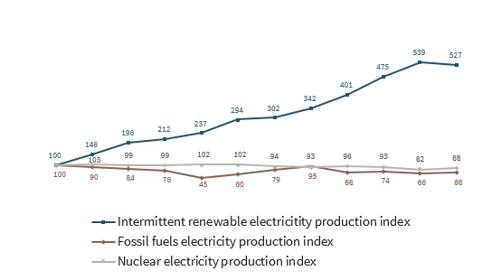 間歇性可再生能源不可避免地滲透到歐洲電力結(jié)構(gòu)中,對電網(wǎng)的穩(wěn)定性構(gòu)成了越來越大的挑戰(zhàn)。而在歐洲,可再生能源的發(fā)展速度遠(yuǎn)快于電力消費(fèi)的增長。而在法國,可再生能源自從2005年至2010年以來一直沒有太大增長??稍偕茉吹某霈F(xiàn)比傳統(tǒng)的可控電源要晚(例如天然氣、石油和煤炭被稱為“可控電源”,核電也是可控的,但由于慣性強(qiáng)而需要更長的時間):