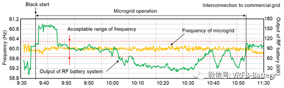 盡管微電網(wǎng)中電力需求與太陽能系統(tǒng)的電力輸出總是波動(dòng),但VRF電池可以通過充電/放電來穩(wěn)定配電線路的電壓和頻率,以維持電力供需平衡。