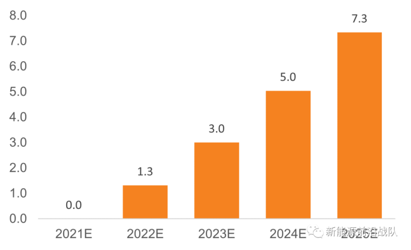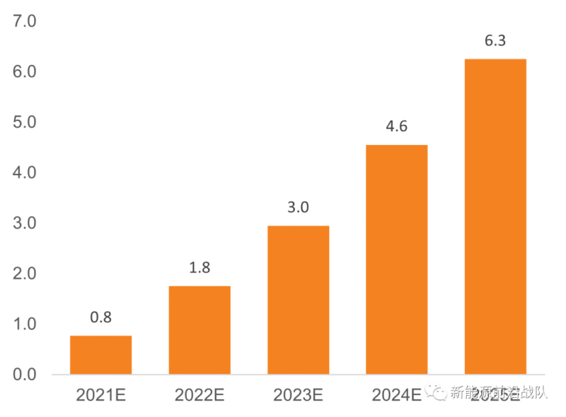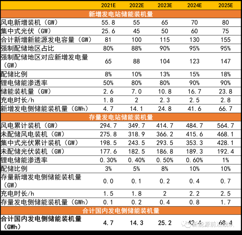 國內新能源發(fā)電未配儲裝機量:基于20年未配儲新能源發(fā)電裝機量及21-25年新能源發(fā)電裝機量及發(fā)電側強配比例測算;