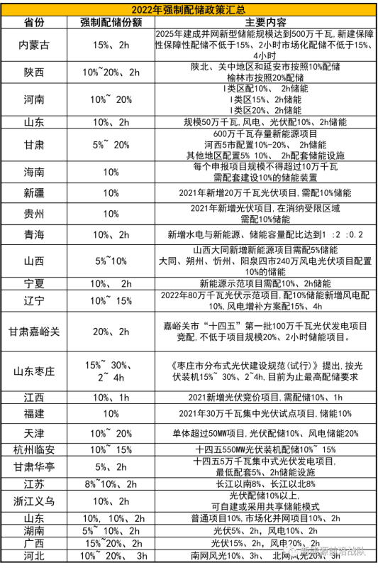 圖:2022年強制配儲政策總匯