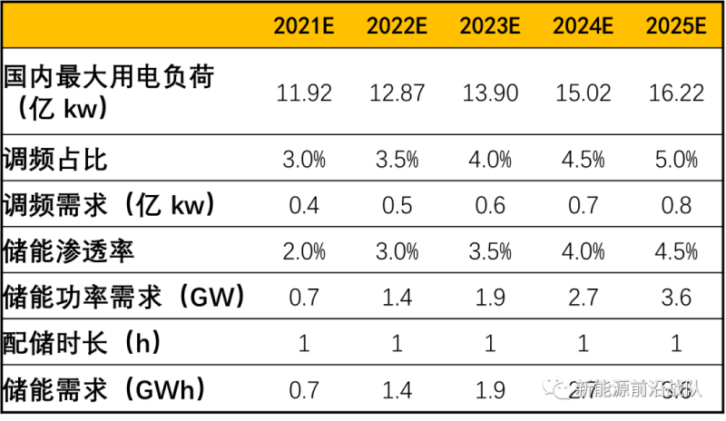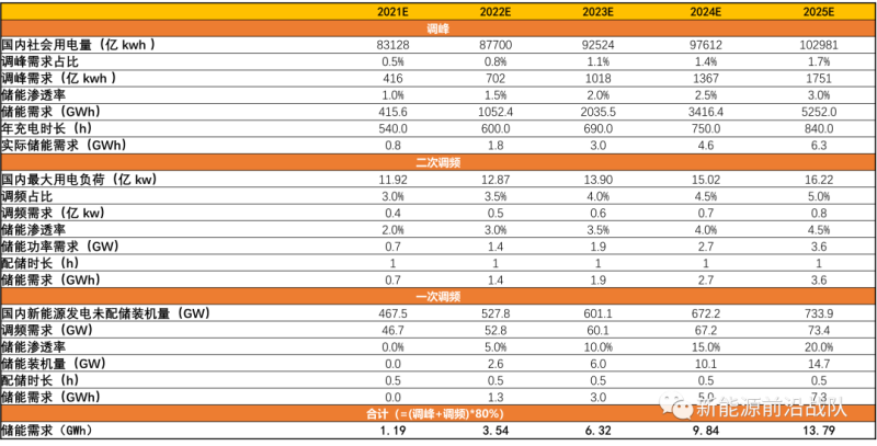 一次調頻需求測算:預計25年需求達7.3GWh,有望成為電網側儲能裝機量最大增量
