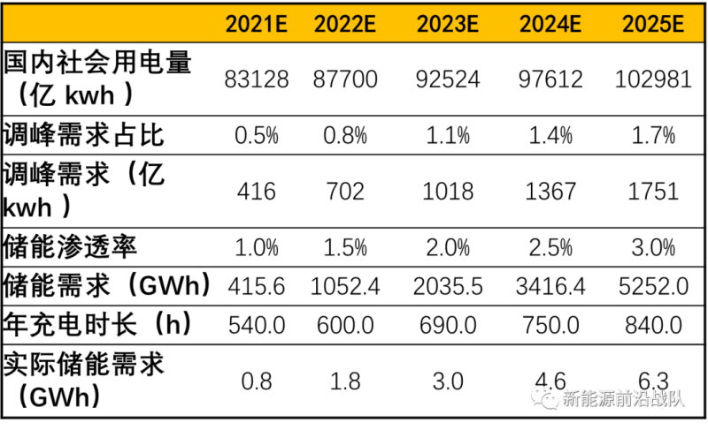調峰需求測算:預計25年需求達6.3GWh,21-25年CAGR+69%