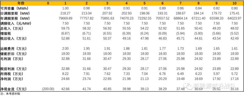 調頻經濟性:以7.5元/MW補償標準計算,全生命周期IRR=14.91%