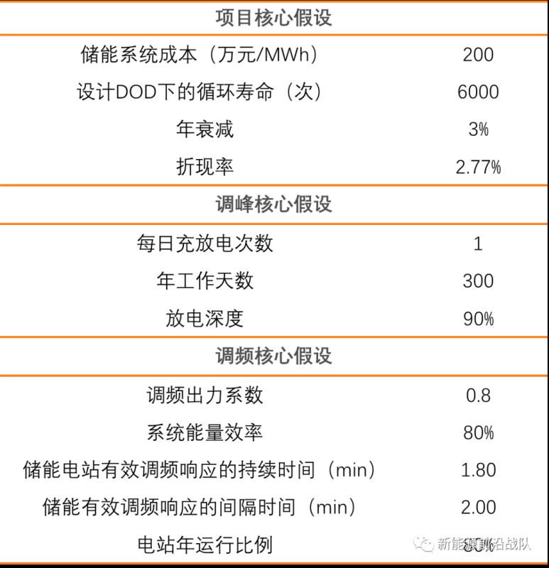 表:獨立儲能同時參與調峰+調頻的核心假設