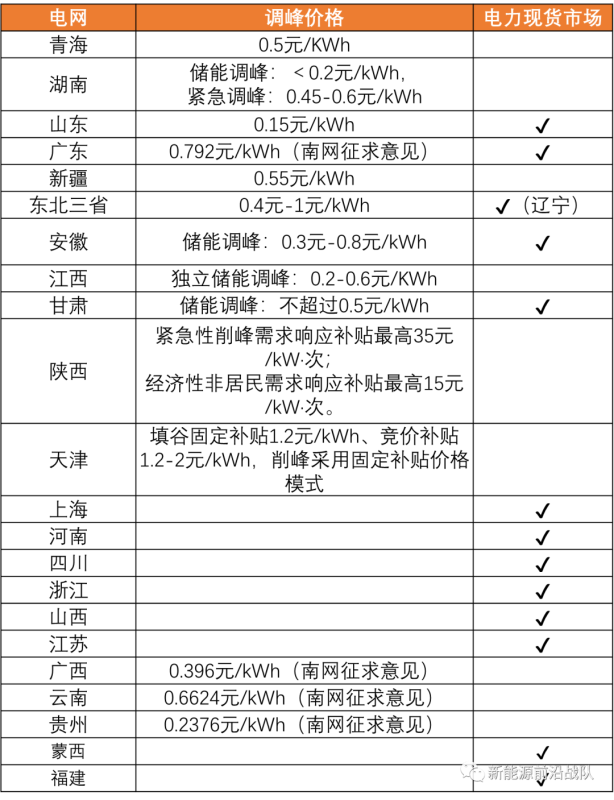 表:國內調峰場景對儲能需求測算