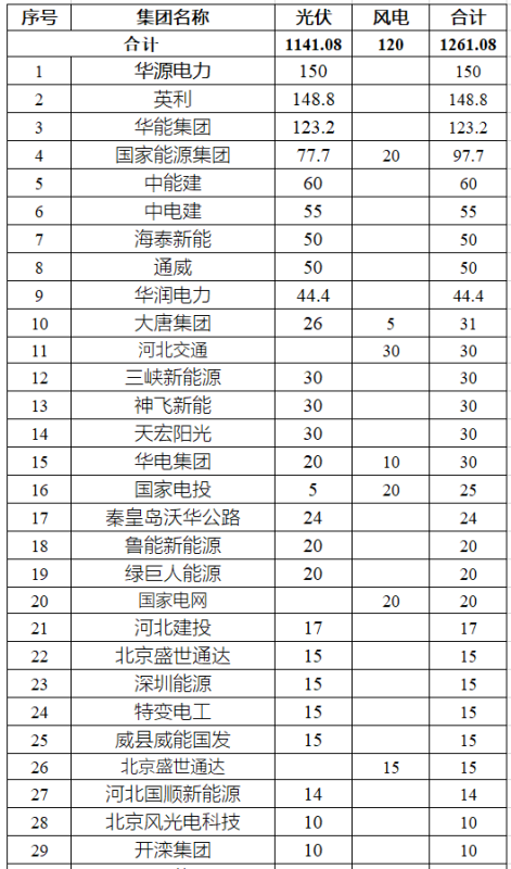 河北?。阂?guī)劃5236萬(wàn)千瓦,已經(jīng)發(fā)了4258萬(wàn)千瓦項(xiàng)目名單;