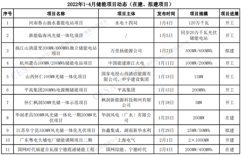 中國儲能網(wǎng)訊:據(jù)中國化學與物理電源行業(yè)協(xié)會儲能應用分會產(chǎn)業(yè)政策研究中心不完全統(tǒng)計,2022年1-4月,儲能擬、在建項目達到31個。其中光伏配儲項目13個,獨立儲能電站項目10個,其它分別為抽水蓄能、火電調(diào)頻、氫儲能、熔鹽儲能項目等。