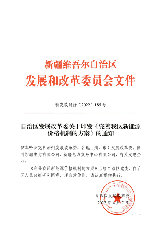 新疆自治區(qū)發(fā)改委印發(fā)《完善我區(qū)新能源價(jià)格機(jī)制的方案》