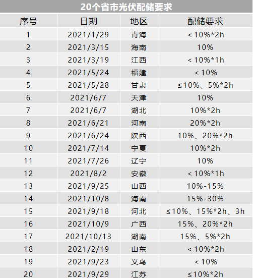 2022年1月,山東省棗莊市能源局、棗莊市行政審批局和棗莊供電公司聯(lián)合下發(fā)的《棗莊市分布式光伏開發(fā)建設(shè)規(guī)范》明確提出,新建分布式光伏要“按照裝機(jī)容量的15%-30%、時(shí)長(zhǎng)2-4小時(shí)配置儲(chǔ)能設(shè)施,或者租賃同等容量的共享儲(chǔ)能設(shè)施”。3月16日,河北省能源局也發(fā)布了《屋頂分布式光伏建設(shè)指導(dǎo)規(guī)范(試行)》,要求配套儲(chǔ)能,可選擇自建、共建或租賃等方式靈活開展配套儲(chǔ)能建設(shè)。屋頂分布式光伏項(xiàng)目逐步按照“光伏+儲(chǔ)能”方式開發(fā)建設(shè),以確保電網(wǎng)安全運(yùn)行和用戶供用電安全為原則,統(tǒng)籌考慮負(fù)荷特性和電能質(zhì)量要求進(jìn)行儲(chǔ)能配置。