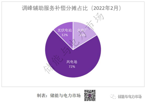 調(diào)峰補(bǔ)償?shù)姆謹(jǐn)?,?022年2月為例,超過80%的補(bǔ)償分?jǐn)傆娠L(fēng)光電站承擔(dān)。