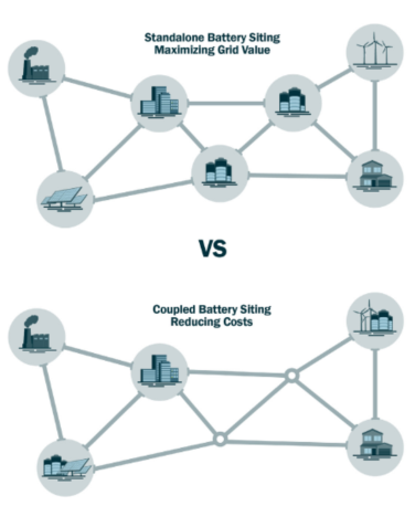 信息圖1 獨(dú)立部署電池儲能系統(tǒng)的選址vs共址部署電池儲能系統(tǒng)的選址