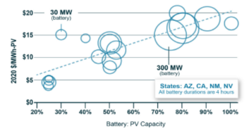 市場價格激勵了太陽能發(fā)電設(shè)施配套部署短時的電池儲能系統(tǒng)。